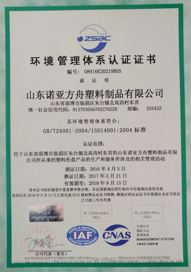 環(huán)境管理體系認(rèn)證證書