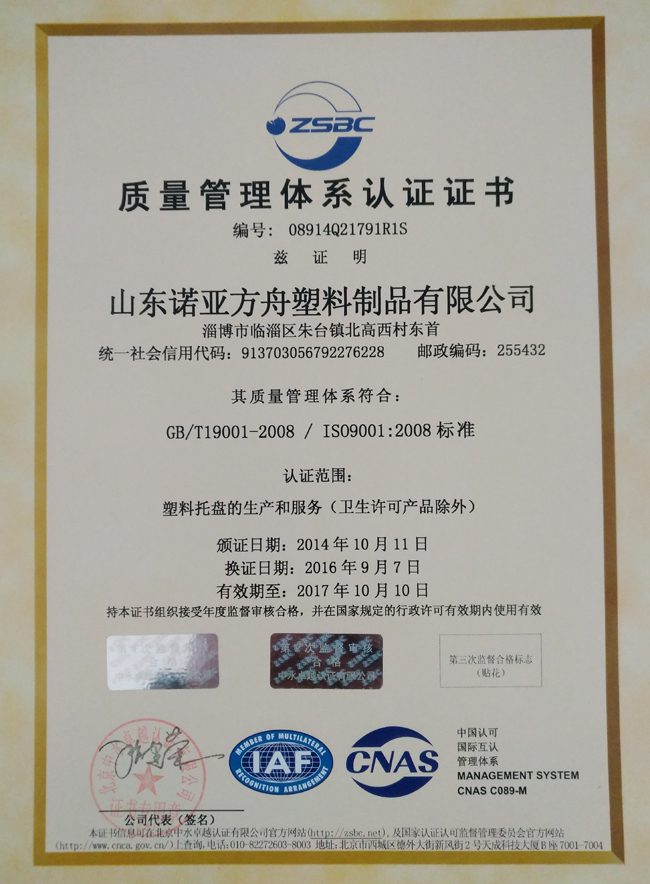 質(zhì)量管理體系認(rèn)證證書(shū)