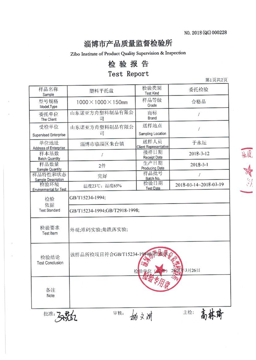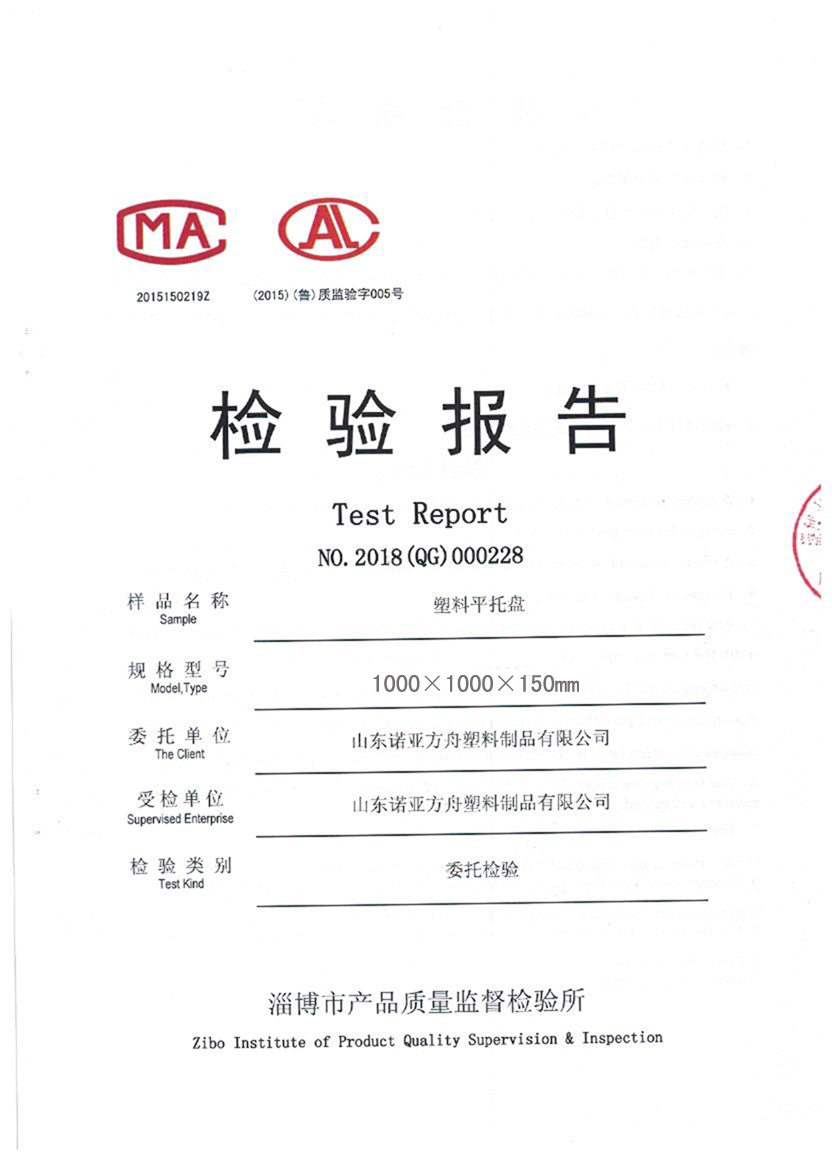 (塑料托盤質(zhì)檢報告)淄博市產(chǎn)品質(zhì)量監(jiān)督檢驗所