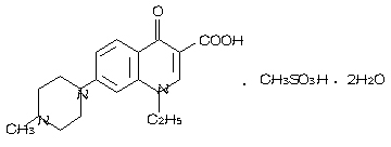 化 學(xué) 名:1-乙基-6-氟-1,4-二氫-7-(4-甲基-1-哌嗪基)-4-氧代-3-喹啉羧酸甲磺酸鹽。