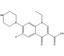 化學(xué)名:1-乙基-6-氟-1,4-二氫-4-氧代-7-(1-哌嗪基)-3-喹啉羧酸